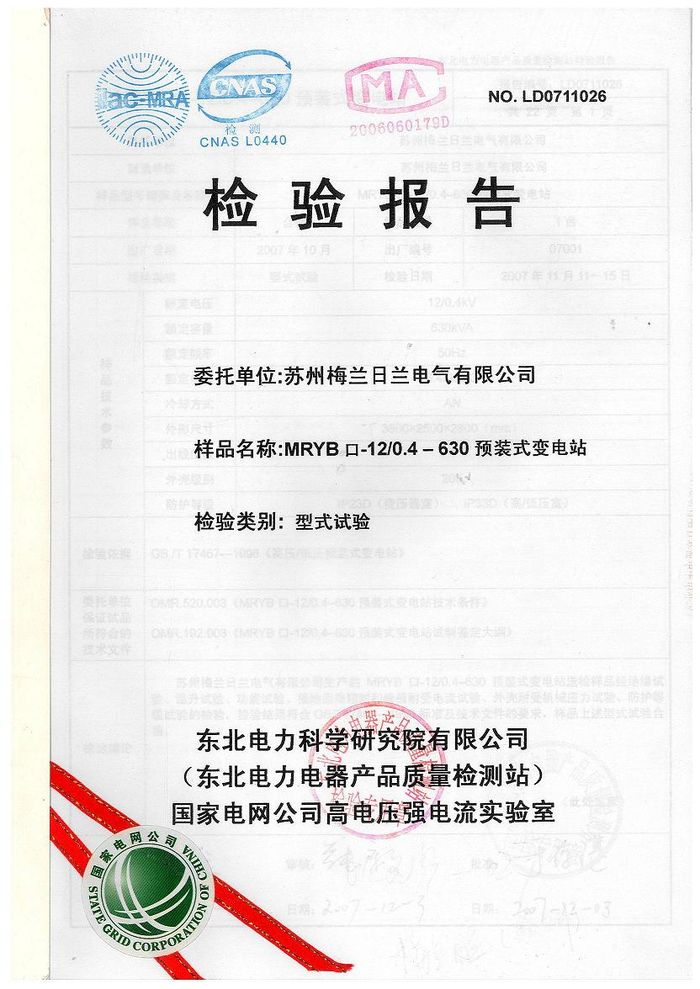(成套)MRYB高壓預(yù)裝變電站資質(zhì)證書