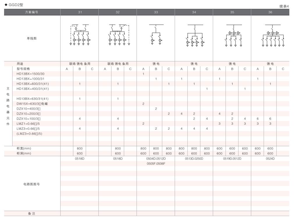 此外,為適應(yīng)無功補(bǔ)償?shù)男枰O(shè)計(jì)了GGD電容補(bǔ)償柜,其主電路方案4個(gè),共12個(gè)規(guī)格。