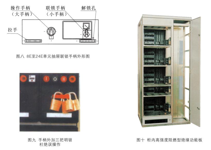 小手柄的操作及其位置定義與8E/4, 8E/2單元操作于柄基本相同,唯一沒有“斷開位置”而代之以“連接位置(↓)。只有當(dāng)手柄處于此位置時,才可操作主開關(guān)操作手柄(大手柄)。大手柄指示箭頭橫向左側(cè)時為“分?jǐn)辔恢?rsquo;,此時一次和二次電路處于無電狀態(tài),大手柄順時針轉(zhuǎn)動到指示箭頭向上時為“合閘位置”,主開關(guān)合閘。小手柄和大手柄的操作有嚴(yán)格的機(jī)械聯(lián)鎖,不能隨意操作,更不能硬扳死撬。注意:只有小手柄處在“連接位置”時,大手柄才能進(jìn)行合閘操作;同時只有大手柄處在“分?jǐn)辔恢茫瑫r,小于柄方能轉(zhuǎn)動。有時大手柄雖也處在“分?jǐn)辔恢?rsquo;但定位不準(zhǔn),這會造成小手柄不能轉(zhuǎn)動或轉(zhuǎn)動不到位,此時千萬不可硬扳,應(yīng)再稍轉(zhuǎn)動大手柄使之準(zhǔn)確到位即可。