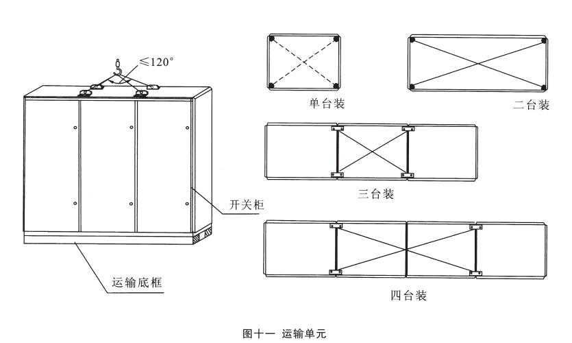 運(yùn)輸單元:產(chǎn)品分四種規(guī)格的運(yùn)輸單元:單臺裝、二臺裝、三臺裝和四臺裝。但總長度不得超過3m,見圖十一。