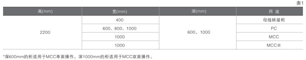 柜體外形尺寸見表1。